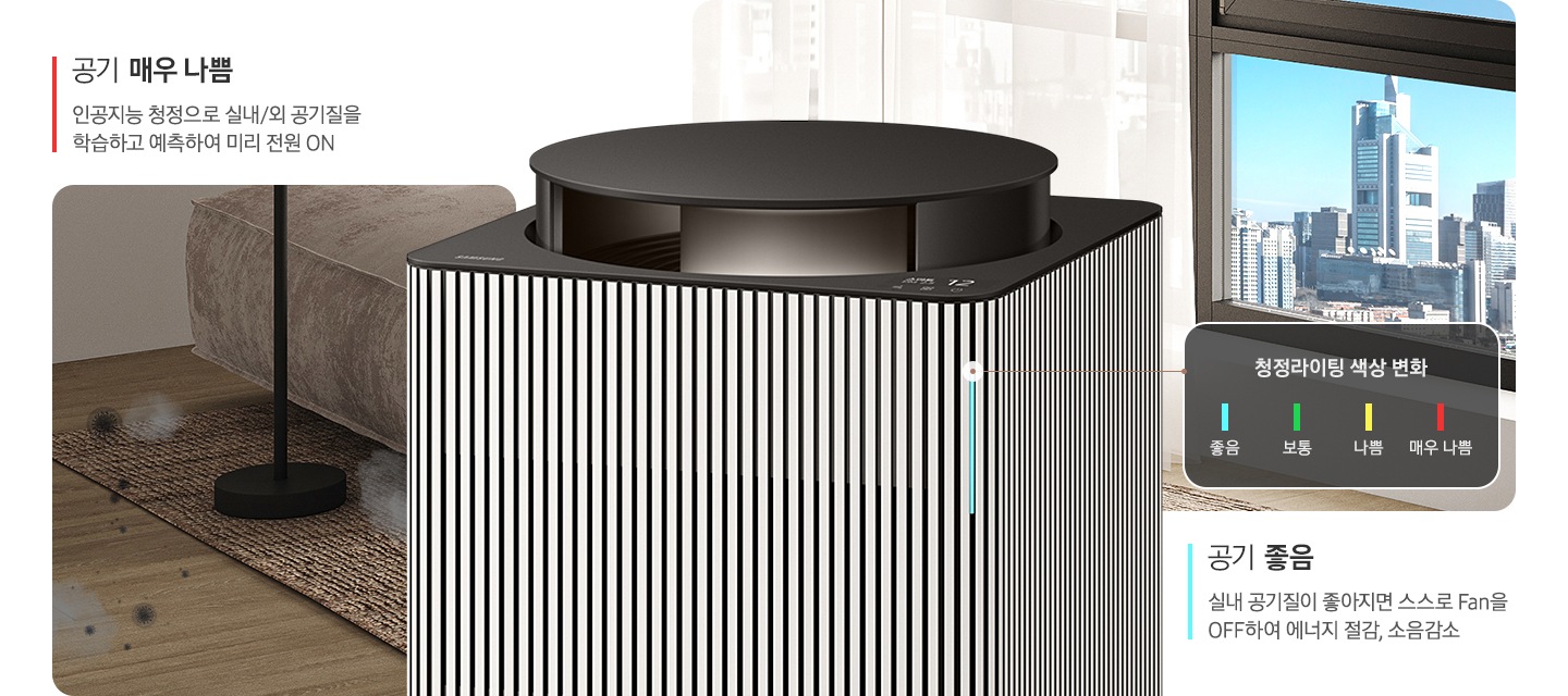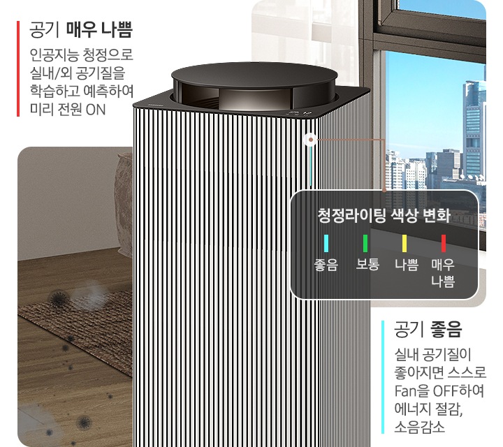 - 내용 : AI 절약모드는 공기질이 '좋음' 상태를 유지할 때 바람세기를 조절하여 에너지를 절약