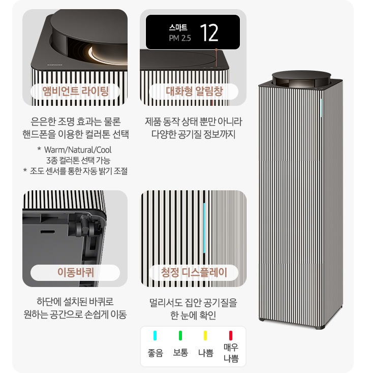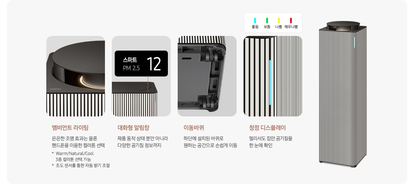 * 앰비언트 라이팅의 컬러톤, 조도 조정은 SmartThings를 통해 가능합니다.