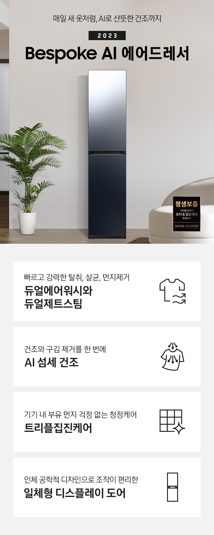 * 평생보증은 디지털 인버터 모터 & 컴프레서 한정입니다.