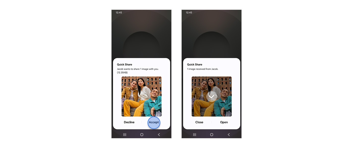 삼성 갤럭시 기기를 사용하지 않는 지인과도 Quick Share를 사용해보세요.