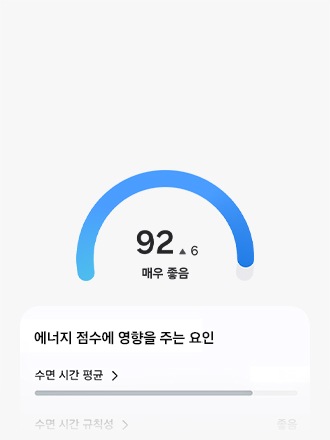 삼성 헬스의 에너지 점수란 무엇인가요?에너지 점수는 어제의 신체 활동과 수면 패턴을 분석해 오늘의 신체적, 정신적 건강 상태를 수치로 보여주는 지표입니다.
