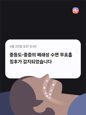 잠자리에 들기 전 갤럭시 워치를 손목에 꼭 맞게 착용하면 수면 중 무호흡증 징후를 자동으로 감지하고 결과를 알려줍니다.