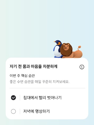 수면 기능으로 더 나은 수면 루틴을 만들어 수면의 질을 향상해 보세요.