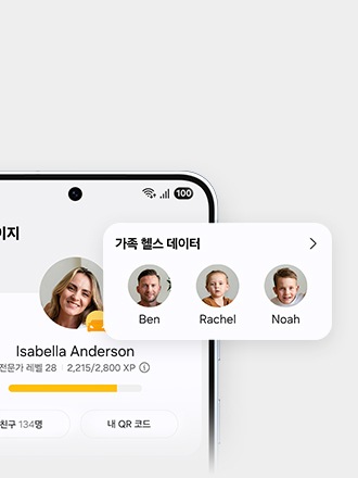 친구와 건강 데이터를 공유하려면 갤럭시 스마트폰에서 삼성 헬스를 열어 내 페이지를 탭하세요. 건강 데이터 공유를 탭하고 '공유 요청하기'나 '공유하기'를 탭하세요.