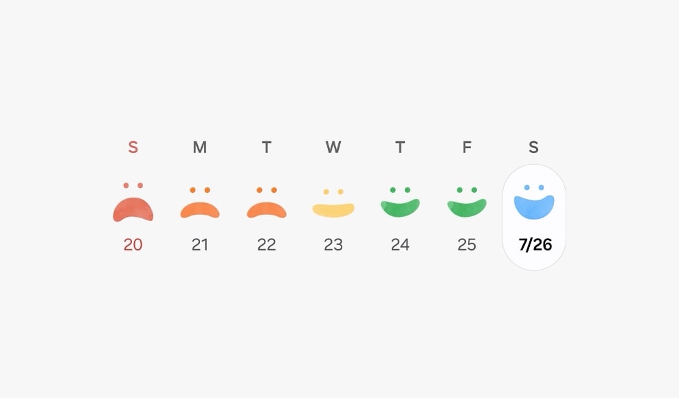 적어도 1일의 근무일과 1일의 휴일을 포함해 7일 이상 갤럭시 워치 또는 갤럭시 링을 착용하고 수면을 취해야 합니다.