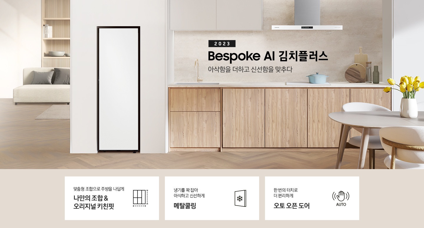 * 1,035 L는 Bespoke 냉장고 키친핏 4도어 RF60C9011AP, 김치플러스 키친핏 4도어 RQ42C94B2AP 페어 설치 시 용량입니다.