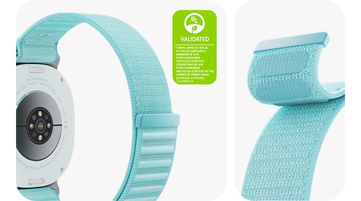 * 갤럭시 워치8 시리즈 패브릭 밴드는 최소 21% 이상의 재활용 소재를 포함하고 있습니다. 밴드에 사용된 패브릭 소재는 최소 44% 이상의 재활용 소재를 포함하고 있습니다.
