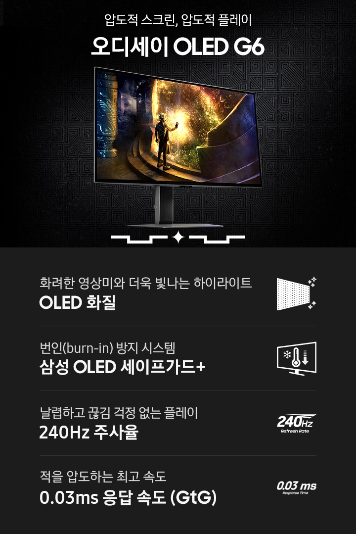 0.03ms의 응답 속도(GtG)를 자랑하는 OLED 기술로