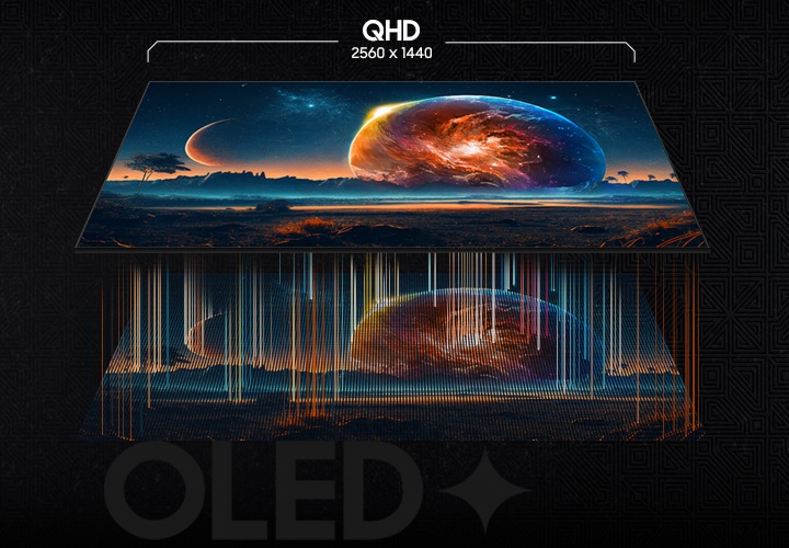 QHD 해상도는 Full HD보다 픽셀 밀도가 1.7배 높아 한층 더 선명하게 디테일을 포착할 수 있고 생동감 넘치는 화면을 제공하죠.