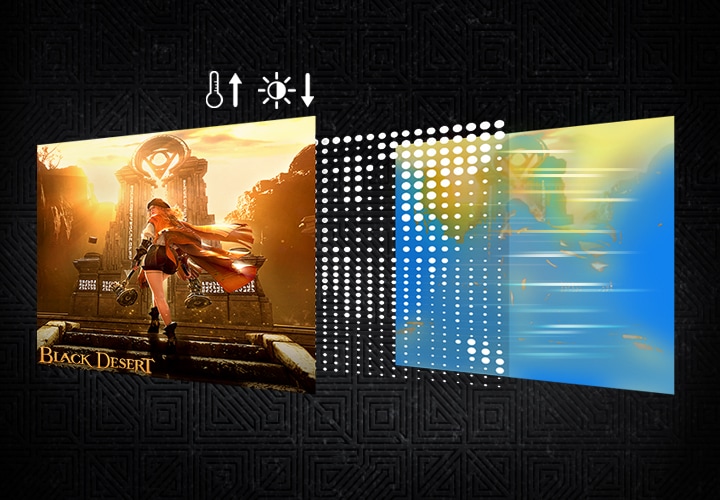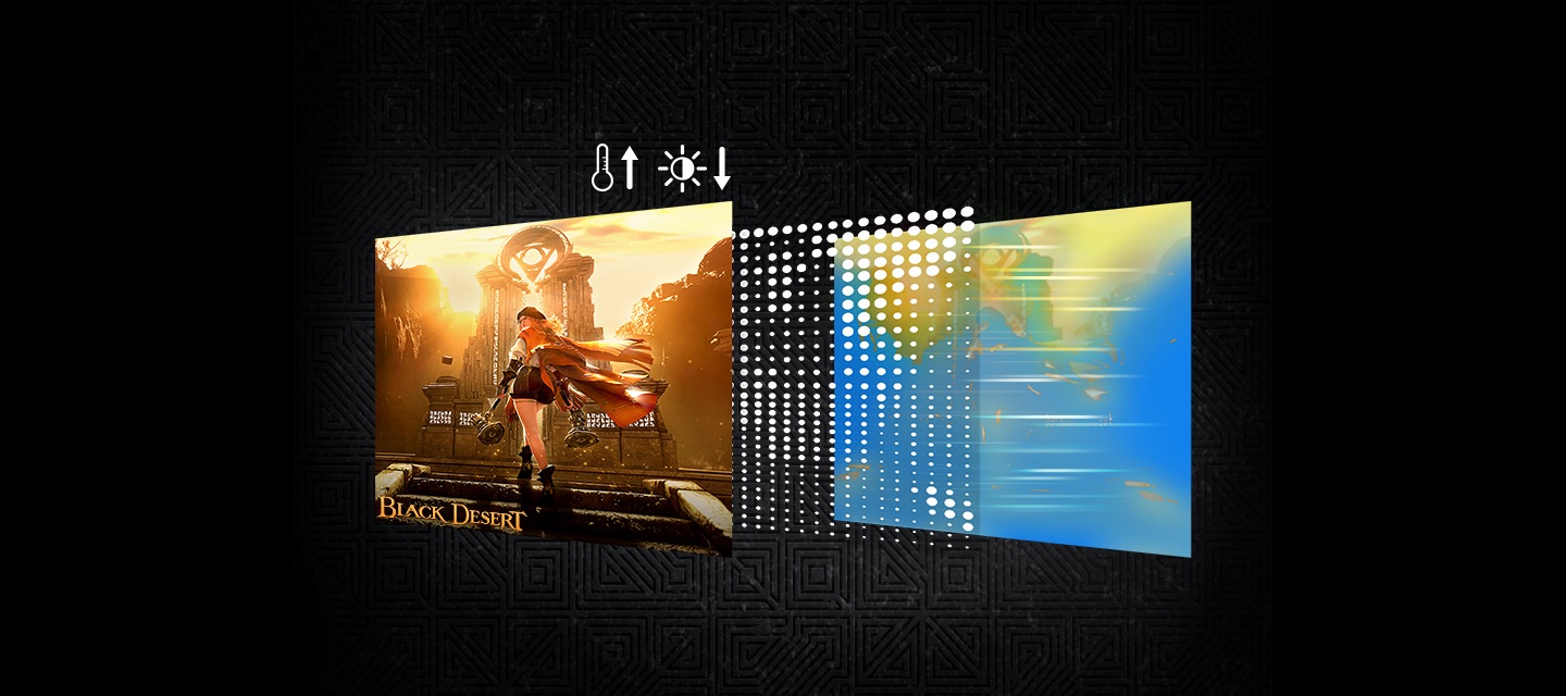 빛샘 현상 걱정 없이 뛰어난 심도 표현으로 어두운 색상과 진짜 블랙의 차이를 느껴보세요.