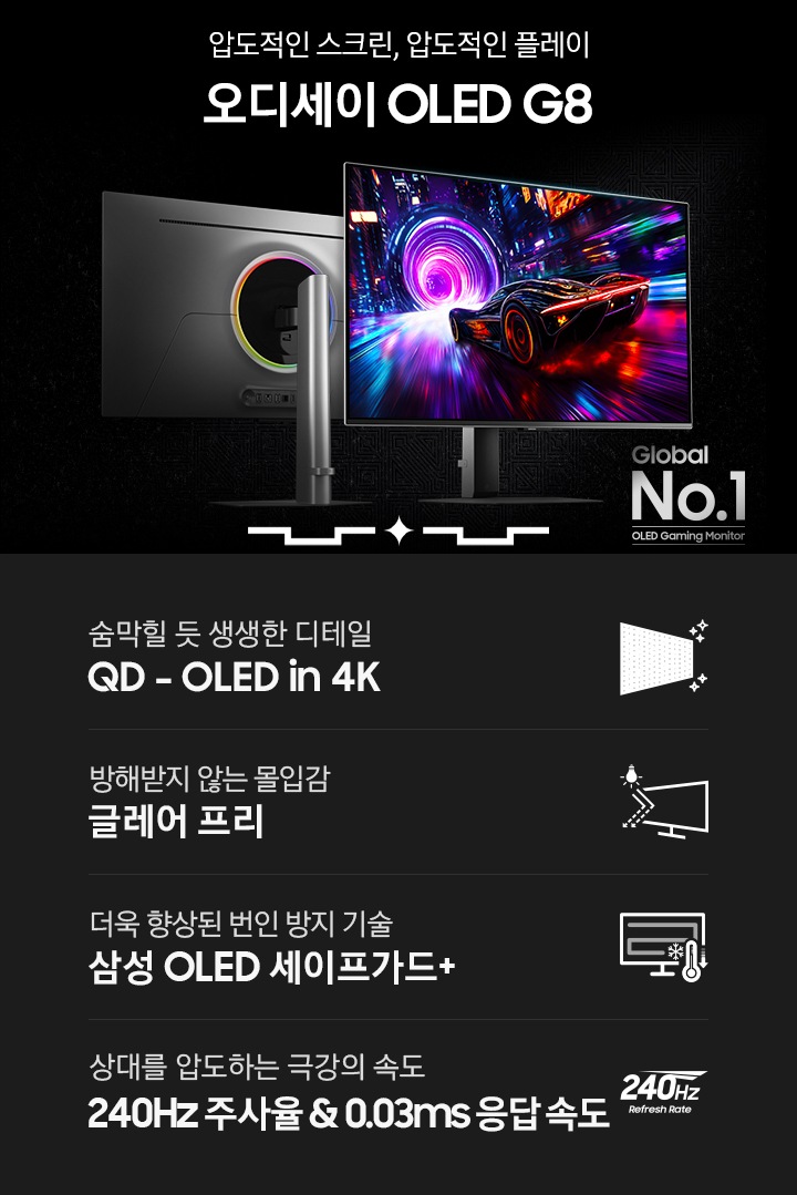 240Hz 주사율과 0.03ms 응답 속도(GtG)로