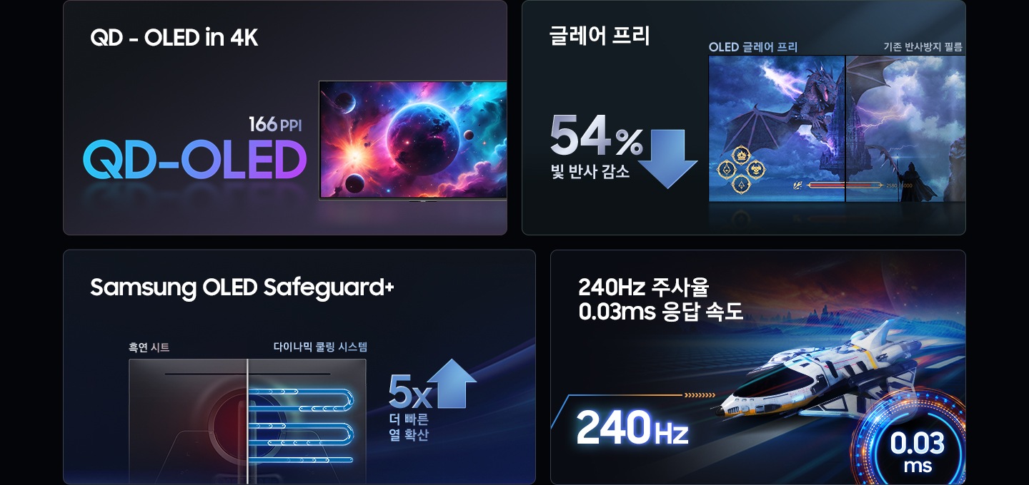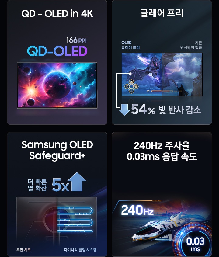 QD-OLED 화면의 깨끗하고 선명한 4K 화질은 어떤 게임이든 놀랍도록 섬세한 디테일을 보여주죠.