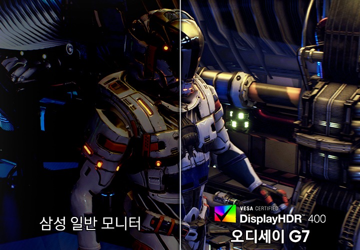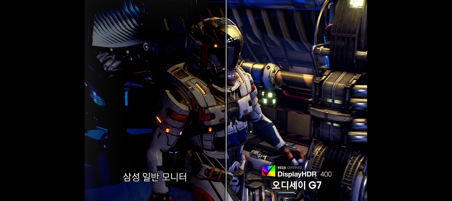 디스플레이 HDR 400은 블랙과 화이트의 강력한 대비를 통해 그림자 속에 숨어있는 적이나 비밀을 발견할 수 있도록 도와줍니다.