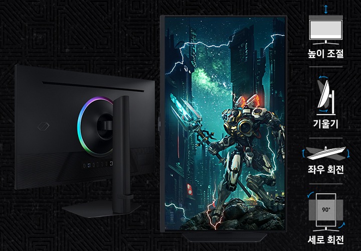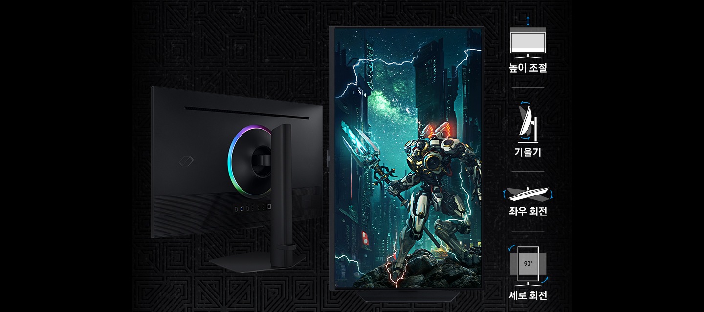 적을 한눈에 볼 수 있도록 모니터의 높이와 각도를 세밀하게 조정할 수 있습니다.
