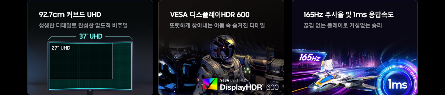 시야를 감싸는 1000R 곡률의 92.7cm 커브드 스크린이 입체감을 극대화합니다.