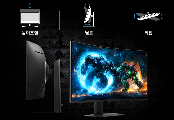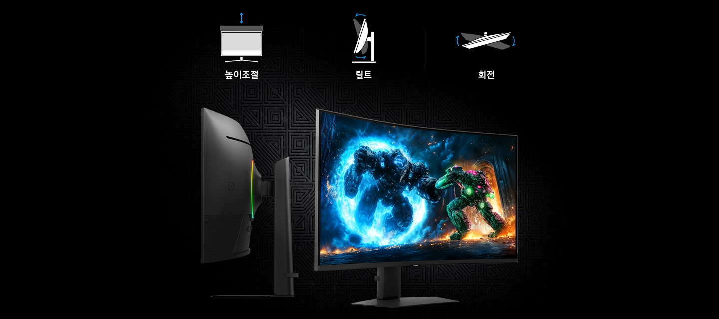 모든 적들이 시야에 들어오도록 모니터를 회전하고, 기울이고, 조정할 수 있습니다.