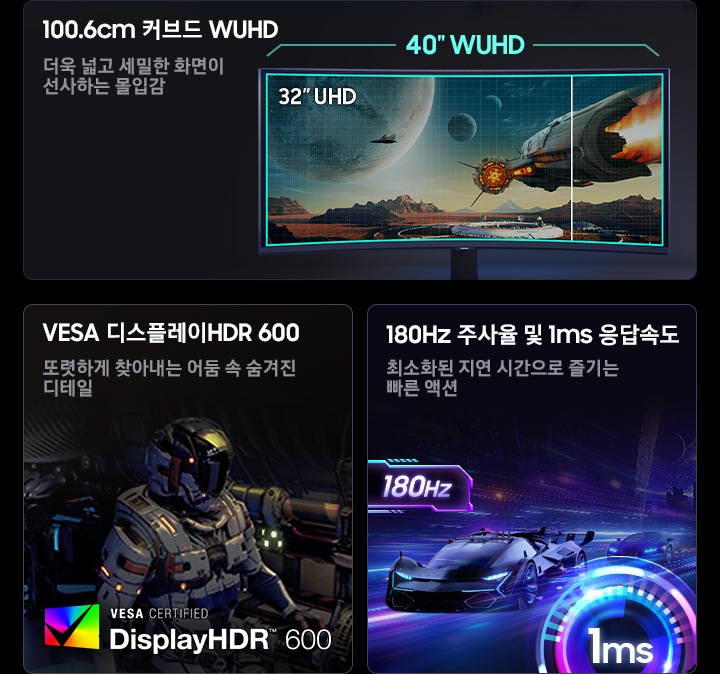 100.6cm 1000R 곡면 디스플레이로