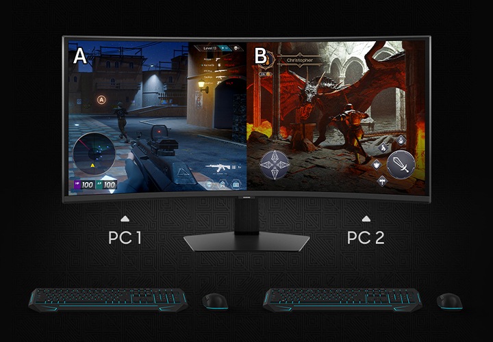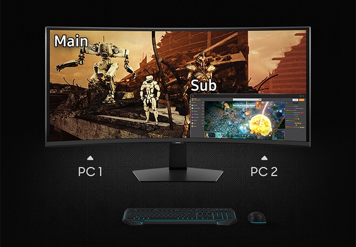 WUHD의 넓은 스크린을 2개의 모니터처럼 분할해 새로운 방식으로 팀 플레이를 즐겨보세요.