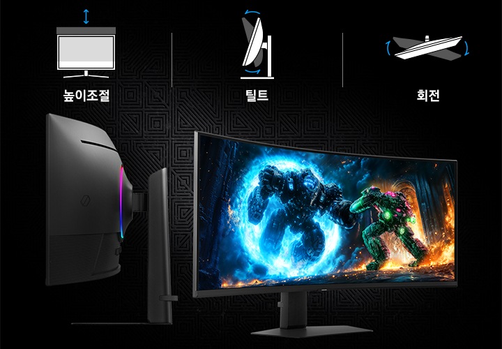 모든 적들이 시야에 들어오도록 모니터를 회전하고, 기울이고, 조정할 수 있습니다.