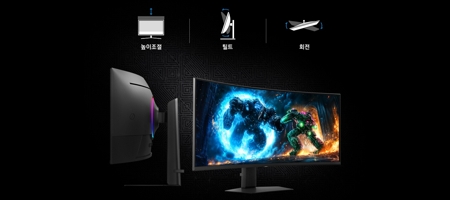 100.6cm 1000R 곡면 디스플레이로 파노라마처럼 펼쳐진 게임 세계에 푹 빠져보세요.