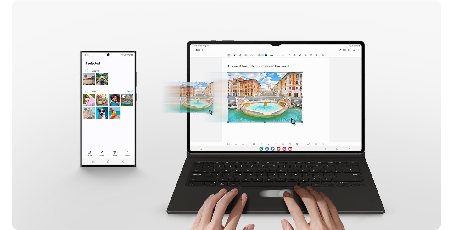 기기를 넘나들며 작업할 수 있습니다. 갤럭시 스마트폰, 탭, 북, 스마트 모니터 또는