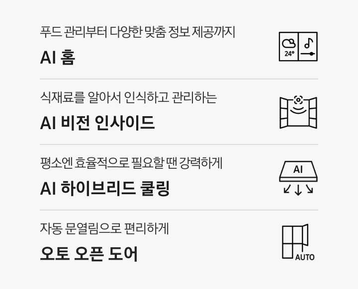 * AI 홈의 일부 기능에 한하여 AI 기술이 사용됩니다. (AI 비전 인사이드, AI 절약 모드 외)