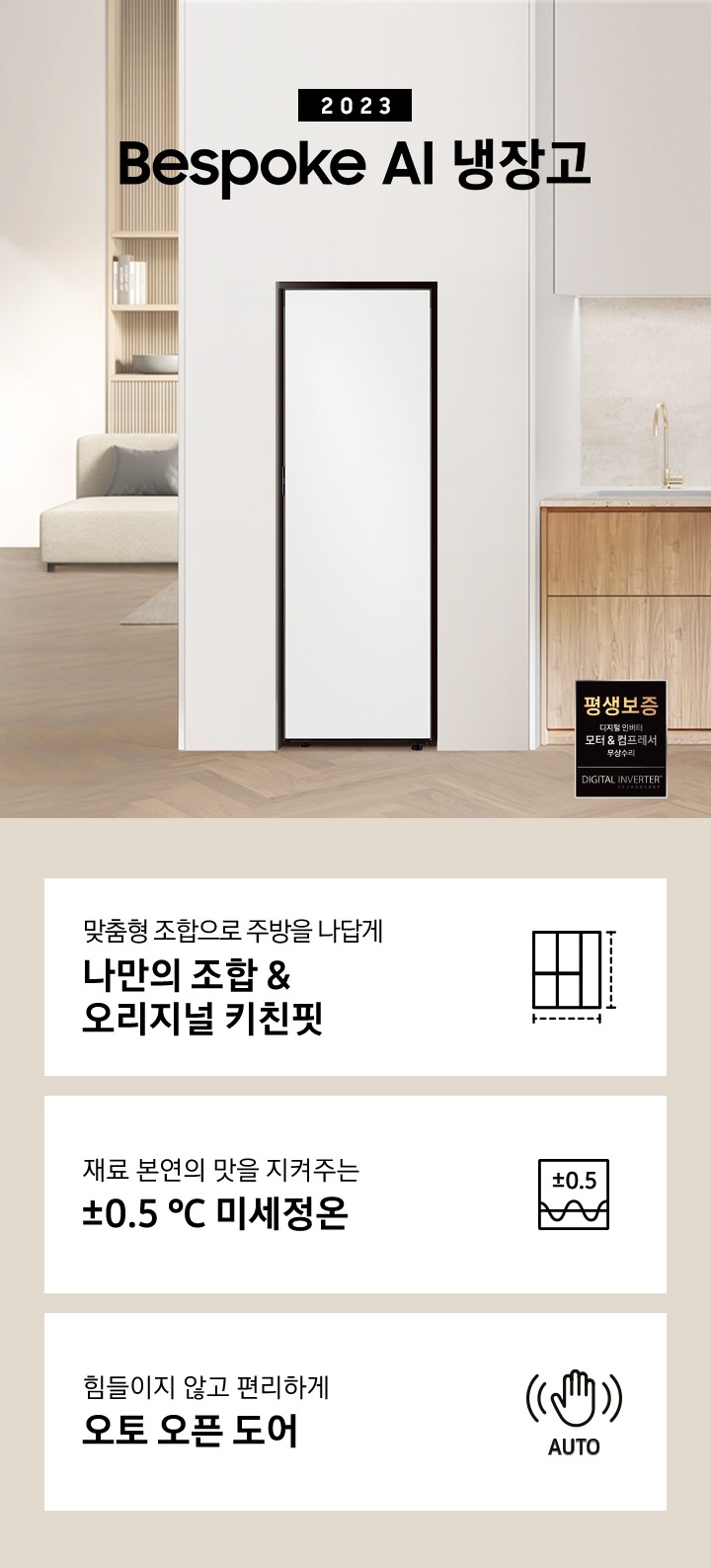 * 오토 오픈 도어는 2021년 이후 출시된 Bespoke 1도어 제품 중 일부 모델에 한하며 실 사용 환경에 따라 차이가 있을 수 있습니다.