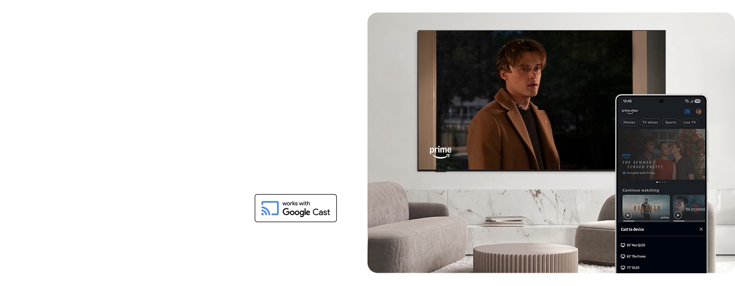 * Apple TV+는 구독이 필요합니다. - 구글 캐스트: 구글 캐스트를 사용하려면 Android 6 이상의 Android™ 휴대폰 또는 iOS 12.0 이상의 iPhone이 필요합니다. 스마트폰, 태블릿 또는 컴퓨터와 TV가 동일한 Wi-Fi 네트워크에 연결되어 있어야 합니다. 앱에서 Cast 아이콘을 누르고 삼성 TV를 선택하여 캐스팅을 시작하세요. 자세한 내용은 https://support.google.com/chromecast/answer/3006709 에서 확인할 수 있습니다. 2024년 스마트 TV 모델부터 지원됩니다. 현재 2025 U8000F 이상 모델에서 사용할 수 있습니다. 이 기능은 소프트웨어 업데이트로 더 다양한 모델에 지원될 수 있습니다. 기능의 사용 가능 여부는 모델, 지역, 제품 출시 연도 및 기타 요인에 따라 달라질 수 있습니다. 구글 캐스트는 제3자에 의해 언제든지 중단될 수 있는 제3자 서비스입니다.