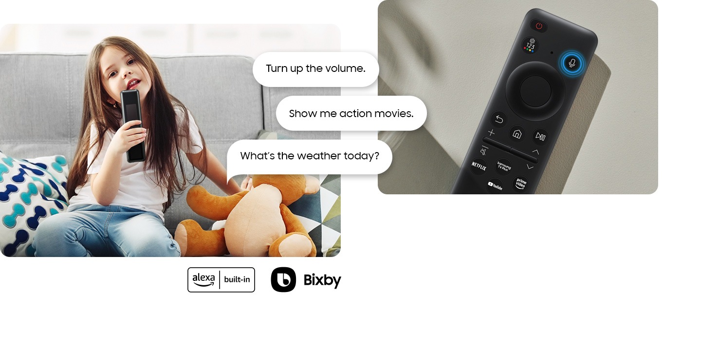 또한 음성 인식 및 삼성 TV 플러스, 넷플릭스, 아마존 프라임 비디오 등을 위한 전용 버튼도 있어3 편리함과 편안함을 모두 만족시킵니다.