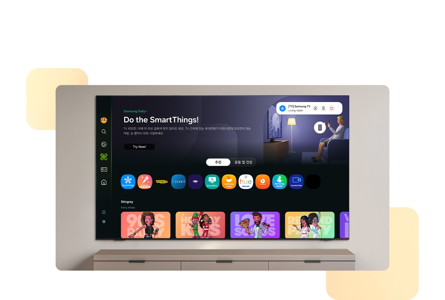 대부분의 삼성 TV에는 스마트싱스가 내장되어 있어 별도의 기기를 추가하지 않아도 TV를 스마트 홈 관리자로 사용할 수 있습니다.