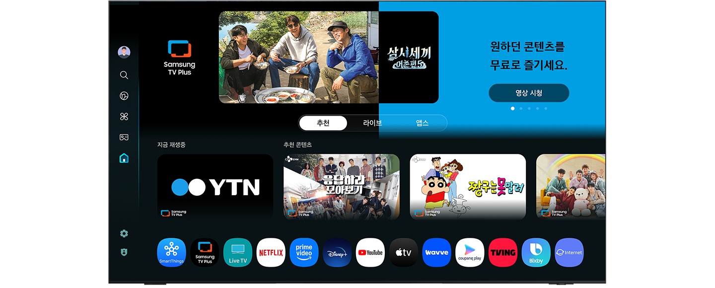 삼성 스마트 TV에서 끝없이 펼쳐지는 콘텐츠 스트리밍을 즐겨보세요.