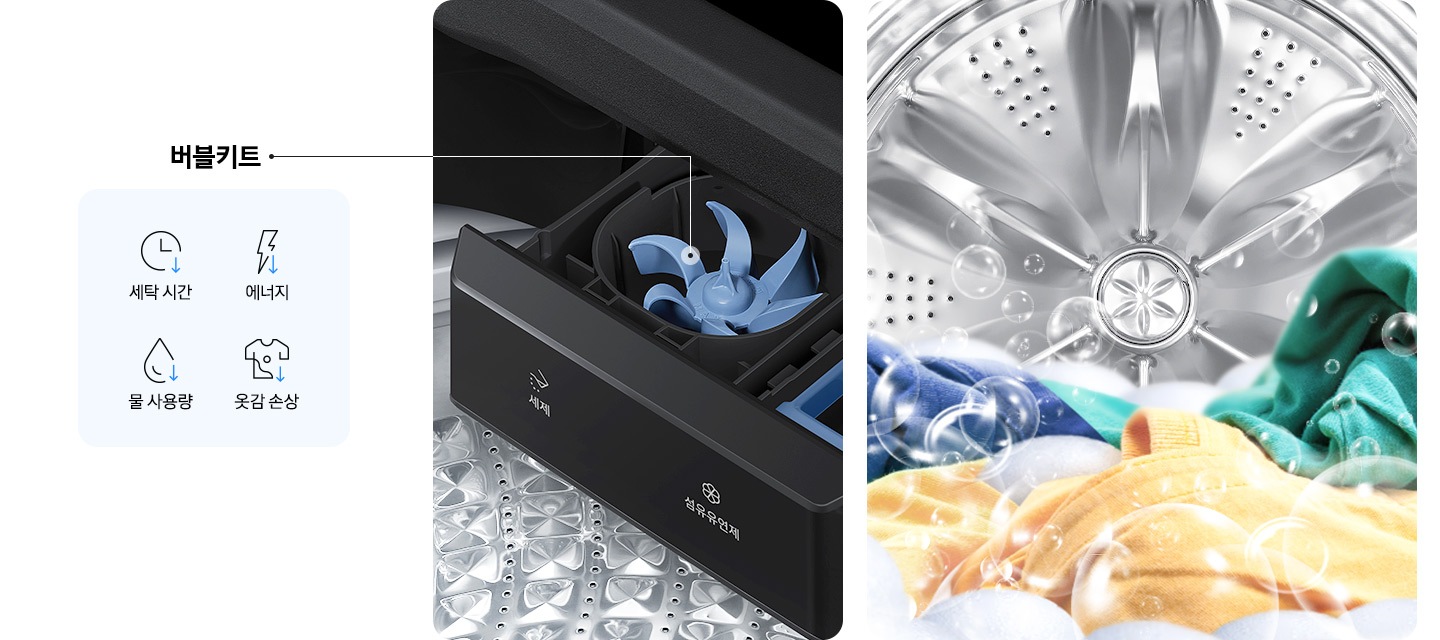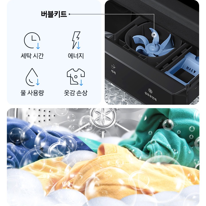 버블폭포로 에너지·물·세탁시간 절약 및 옷감 손상