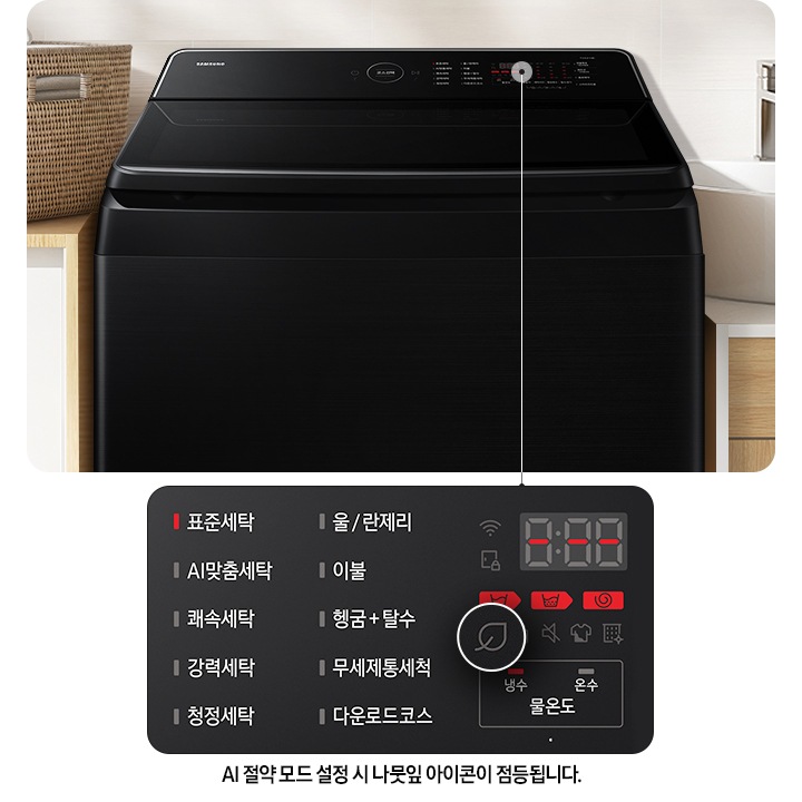 * AI 절약 모드는 표준세탁, AI 맞춤세탁, 강력세탁, 청바지, 타월, 청정세탁 코스에 적용 가능합니다.